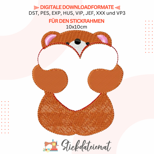 Verleihen Sie Ihren Stickprojekten eine Extraportion Liebe und Niedlichkeit mit unserer digitalen Stickdatei, die einen süßen Teddybären darstellt, der ein Herz ️ in seinen flauschigen Armen hält.