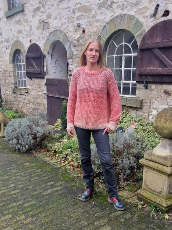 Der Oversize - Pullover kann in jeder Kleidergröße gehäkelt werden.