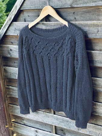 Dieser gemütliche und legere Pullover wird nahtlos von oben nach unten und mit viel Mehrweite gestrickt. Damit erhält er eine lässige und moderne Passform. Blickfang ist das hübsche Blütenmuster auf der Passe, das ganz einfach und eingängig zu stricken ist. Das senkrechte Lochmuster am Körper streckt die ganze Silhouette. Das geteilte Bündchen (hinten ein wenig länger als vorne) gibt ausreichend Freiheit im Hüftbereich.