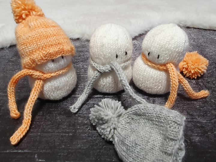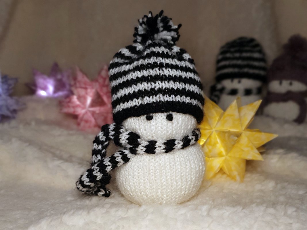 Die angegebene Garnmenge ist nur ein Richtwert. Wenn du ein anderes Garn verwenden möchtest, kann die Garnmenge natürlich variieren. Auch deine Art zu stricken (fest oder locker) können die Angaben beeinflussen. Wenn du ein dickeres Garn verwendest, beachte bitte, dass dein Schneemann ggf. größer wird und benutze - deinem Garn entsprechend - die richtige Nadelstärke.