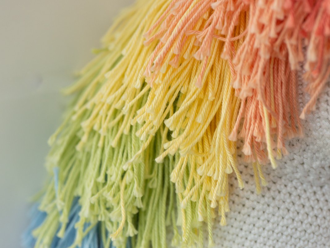 • Baumwollgarn in den Farben Rot, Orange, Gelb, Grün,