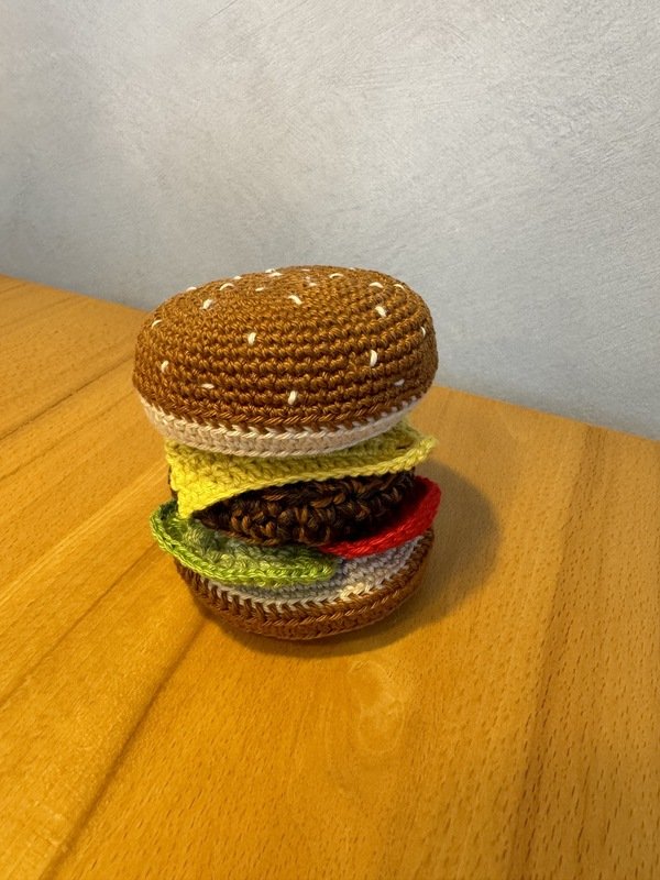 Hier erhältst du eine umfangreiche Anleitung zum Erstellen eines gehäkelten Cheeseburgers, bestehend aus