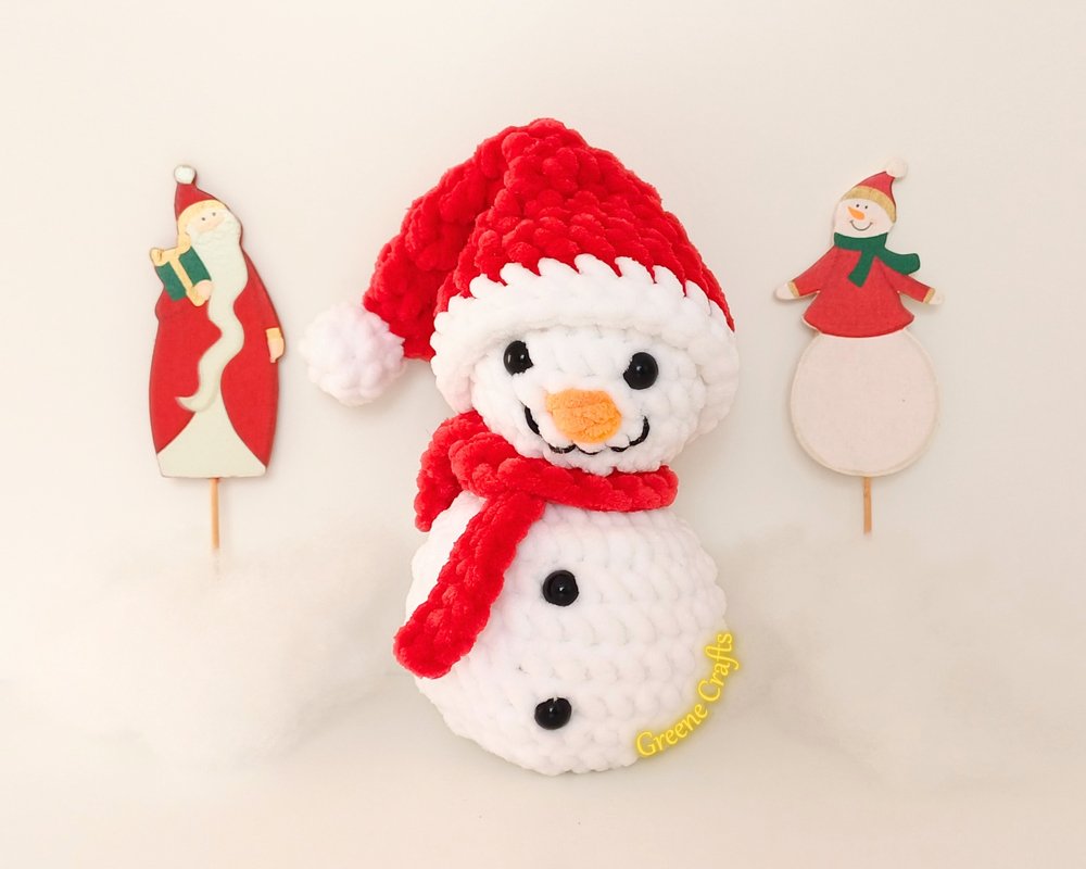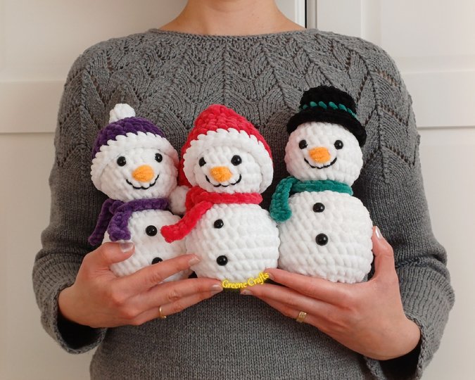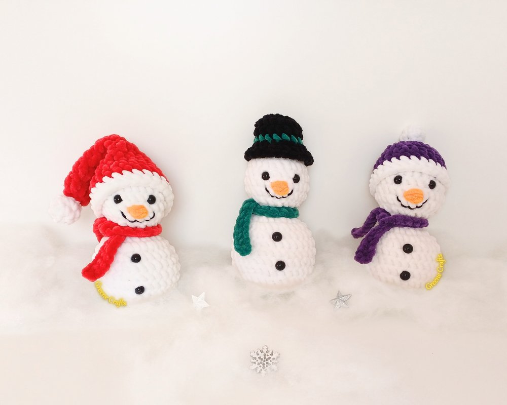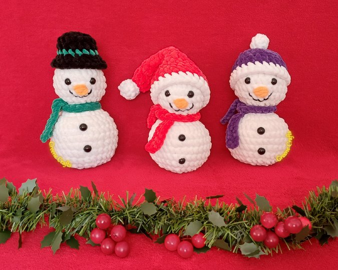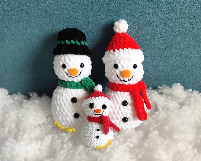 Lerne Snowy Sam kennen – den niedlichen gehäkelten Schneemann! Du kannst ihn in zwei Größen häkeln, je nachdem, ob du voluminöses Plüschgarn oder mittelstarkes Baumwollgarn verwendest. Beide Versionen sind perfekt als kleine Geschenke oder zum Befüllen von Weihnachtsstrümpfen! Gestalte deinen frostigen Freund individuell – mit einer Wintermütze, Weihnachtsmütze oder klassischem Hut, kombiniert mit einem passenden Schal.