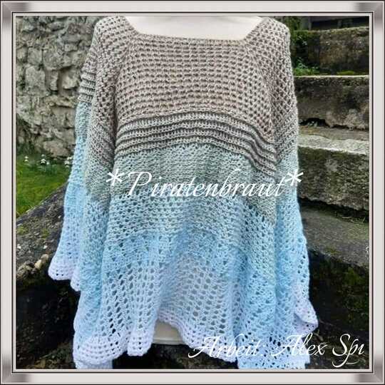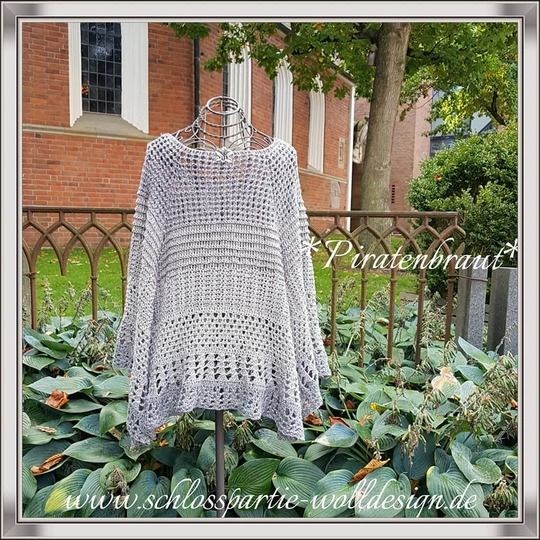 Mit diesem Poncho wirst du zum absoluten Hingucker. Ob für den Alltag oder besondere Anlässe, die "Piratenbraut" wird dir Komplimente einbringen.