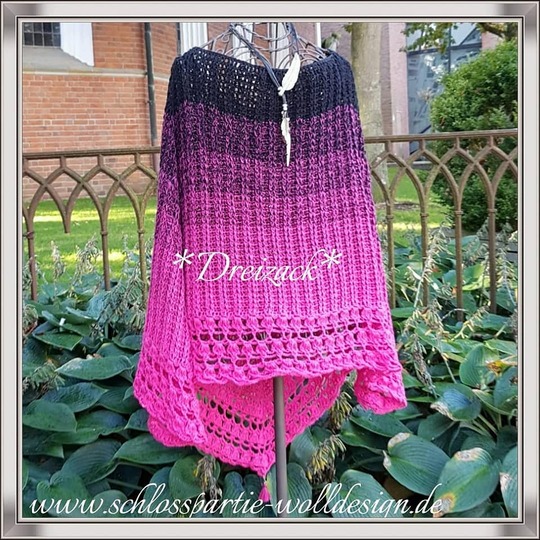 Dreizack Poncho - Eine einzigartige Häkelanleitung für einen trendigen Poncho mit einer unkonventionellen Form. Der Poncho ist vorne gerade geschnitten und hat eine elegante Spitze im Rückenbereich. Durch sein individuelles Design und die Möglichkeit, ihn in verschiedenen knalligen Farben zu häkeln, wird er zu einem echten Hingucker. Die Anleitung ist einfach zu verstehen und ermöglicht es dir, den Poncho in verschiedenen Größen von XS bis XXL anzufertigen.