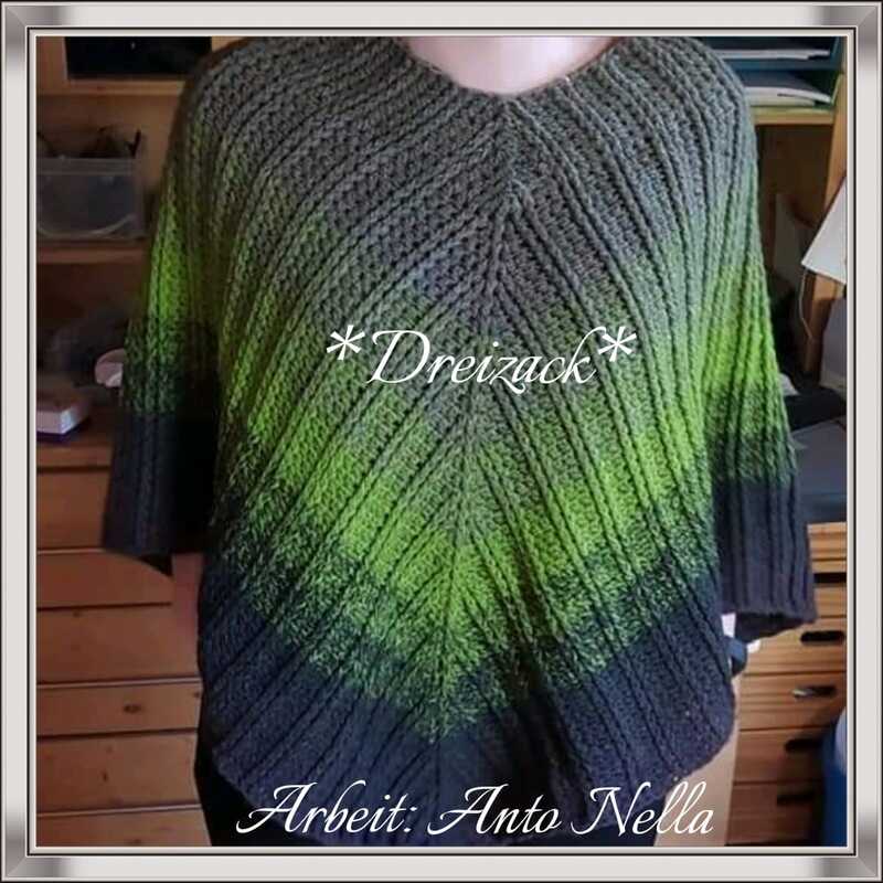 Kreative Häkelanleitung für einen Dreizack Poncho - Entdecke das Besondere an diesem Poncho: Die ungewöhnliche Form, die ihn wirklich einzigartig macht. Mit seiner geraden Vorderseite und der charakteristischen Spitze im Rückenbereich ziehst du garantiert alle Blicke auf dich. Ob du ihn in kräftigen Farben oder dezenten Tönen häkelst, der Poncho wird immer ein echter Eyecatcher sein. Die Anleitung ist detailliert und ermöglicht es dir, den Poncho in den Größen XS bis XXL zu häkeln.