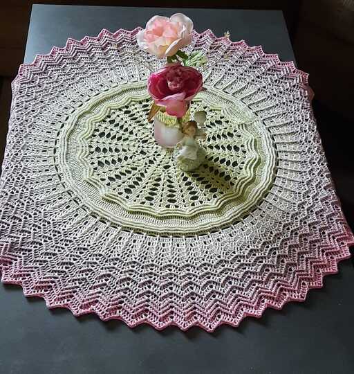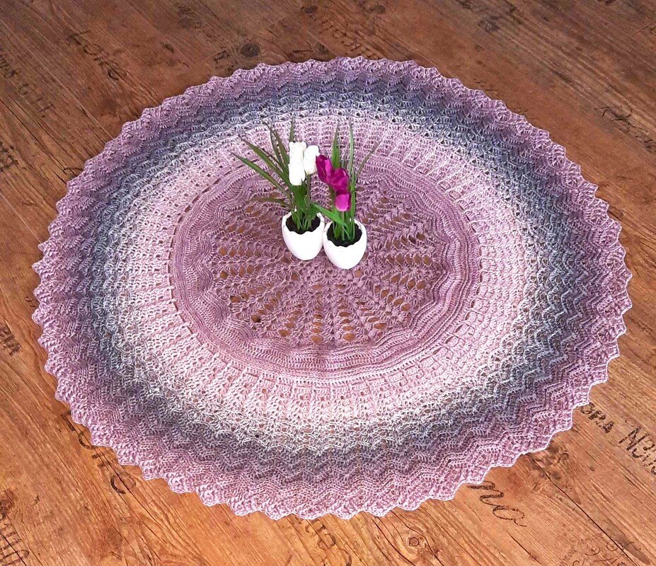 Die Tischdecke Sol sieht auf runden, ovalen, quadratischen oder länglichen Tischen toll aus. Entweder solo oder dekoriert mit einem Blumenstrauß, Kerzen oder einem Osterkörbchen. Das häkeln ist abwechslungsreich und wird nicht langweilig. Die Anleitung ist verständlich geschrieben und beinhaltet Bilder, Text und Häkelschrift. Motivierte Anfänger, die schon das eine oder andere Teil gehäkelt haben, können die Anleitung gut schaffen.