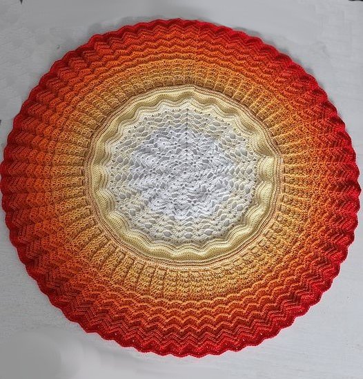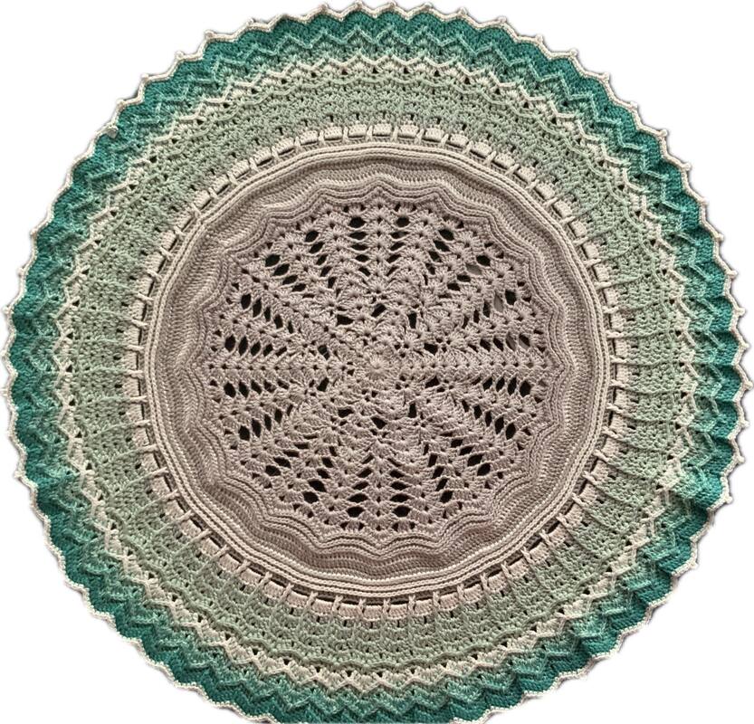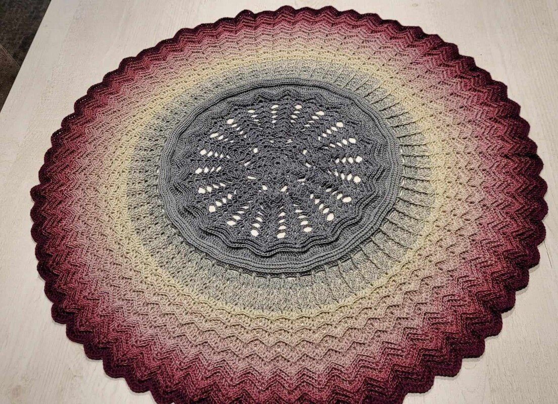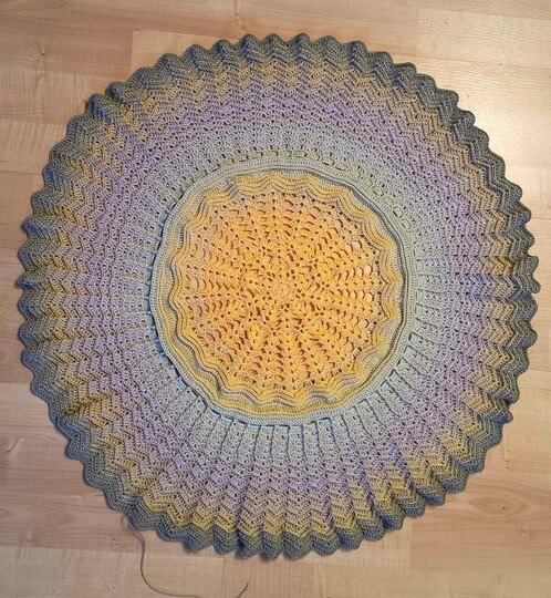 Mit 1000m 3fädigem Farbverlaufsgarn ( 200g) erreichst du einen Durchmesser von ca 70cm-80cm