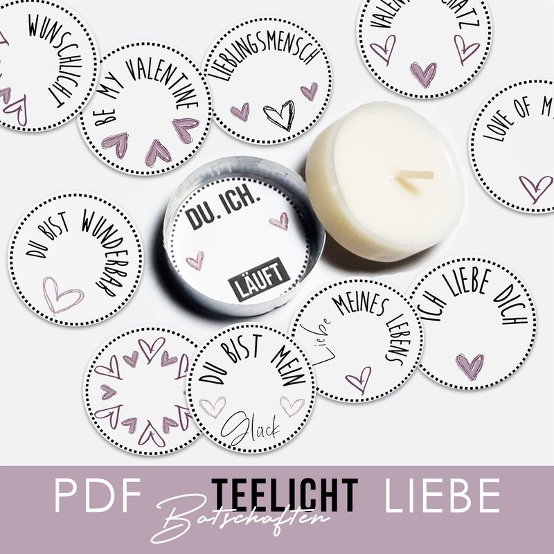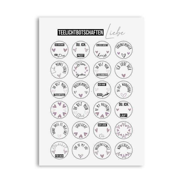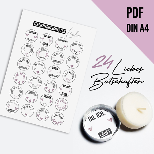 Du erhältst eine PDF mit 24 Liebesbotschaften für Teelichter.