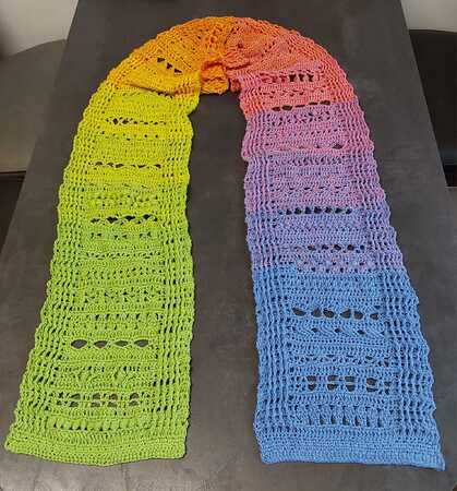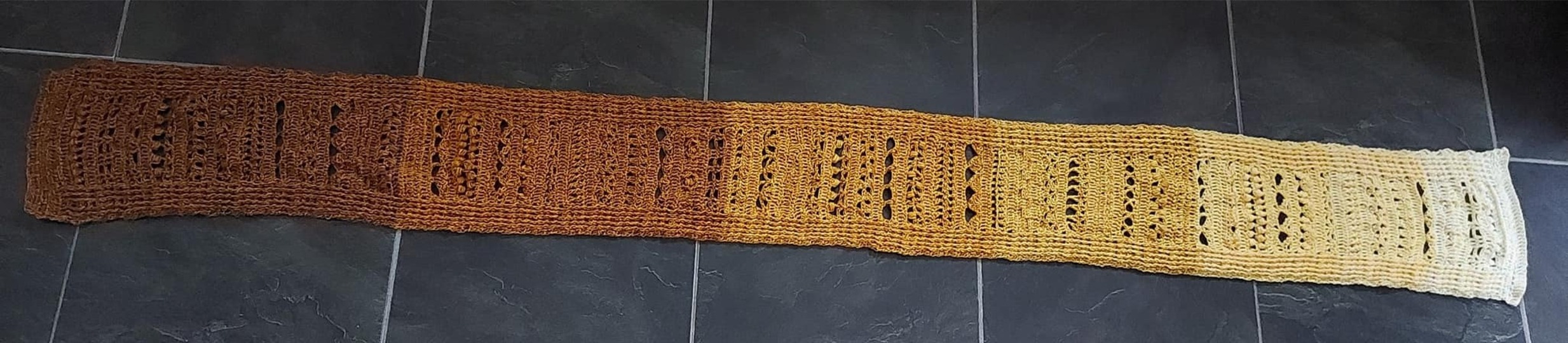 (schmaler Schal, alle 32 Muster 1 x gehäkelt, etwa 120cm lang)