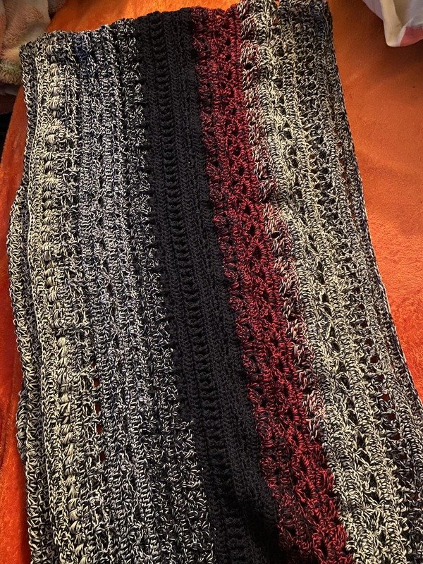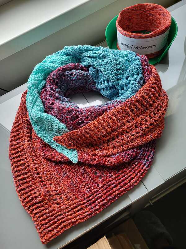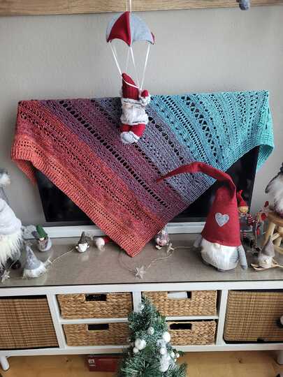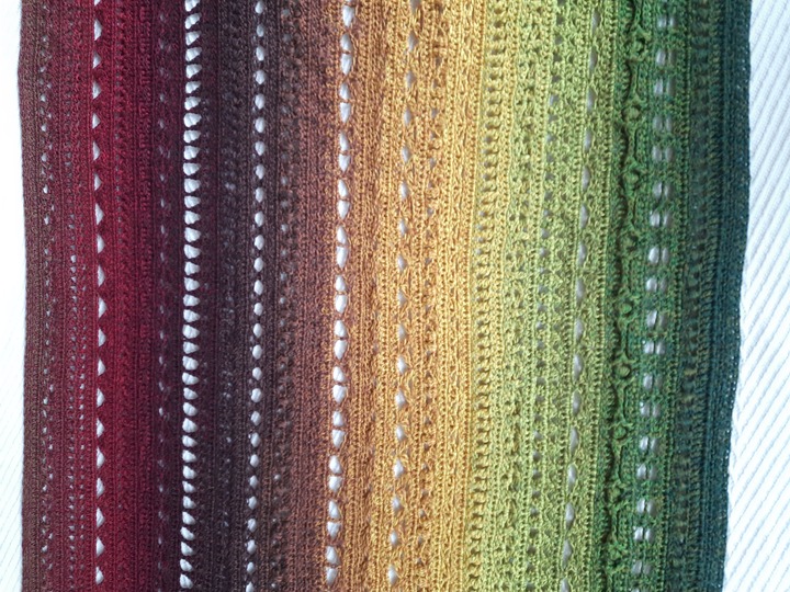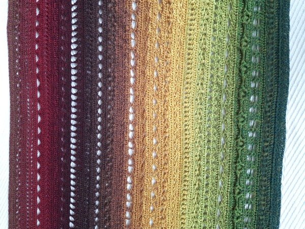 Aus den Mustern kann ein Schal, eine Stola oder eine Decke in jeder beliebigen Größe gefertigt werden.