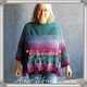 Das Titelbild wurde aus einem 1100 m Schlosspartie Farbverlauf gestrickt und passst einer Konfektionsgröße 42/ 44