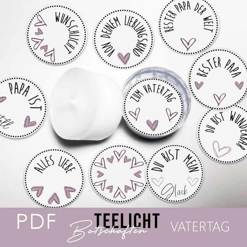 Du erhältst eine PDF mit 24 Botschaften für Teelichter zum Muttertag und Vatertag.
