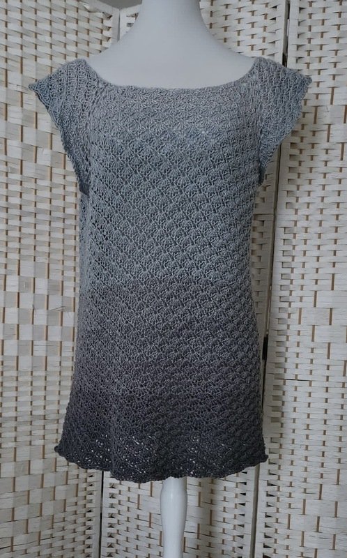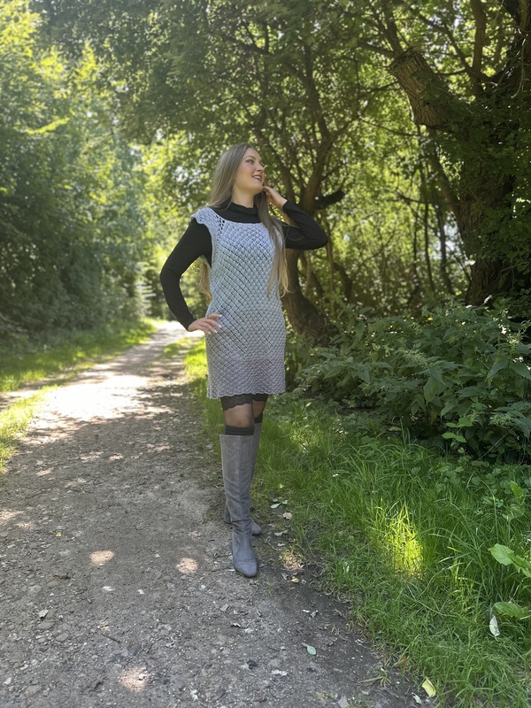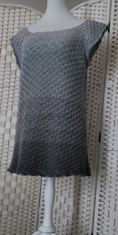 Je nach Garnauswahl, kann man das Kleidungsstück zu jeder Jahreszeit tragen. Besonders gut eignen sich hier Farbverlaufsgarne/ Bobbel, weil das Häkelteil in einem Stück von oben nach unten gehäkelt wird.