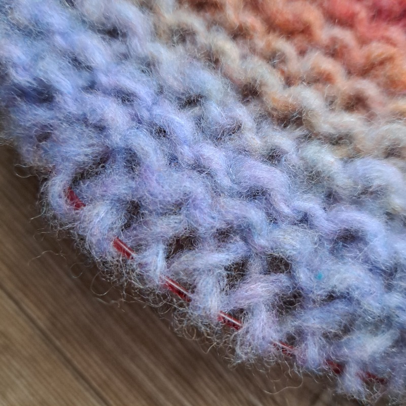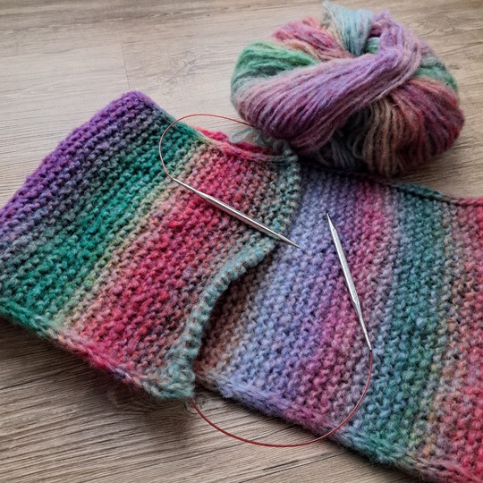 Der Loop wird mit einem provisorischen Maschenanschlag begonnen und mit dem 3-Needle-Bind-Off zusammengestrickt. Alternativ kann auch herkömmlich angeschlagen werden und dann mit der Stopfnadel zusammengenäht werden.