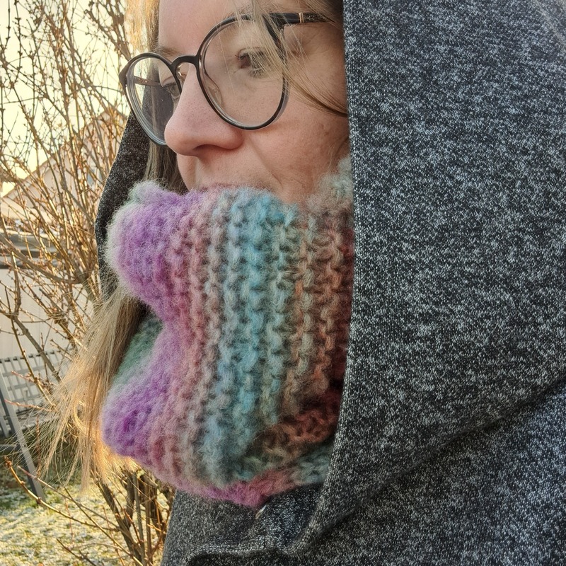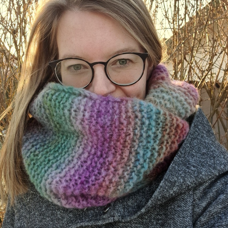 Voluminös und kuschelig. Das beschreibt den Mega Cowl Ory sehr gut. Ein einfaches, aber sehr wirkungsvolles Design, das sowohl einfarbig als auch mit farbigem Garn sehr schön wirkt. Kurze Reihen mit rechten Maschen lassen den Cowl nur so von den Nadeln tanzen – ein wunderbares Projekt, das nicht viel Nachdenken erfordert. Es kommen erfahrene StrickerInnen aber auch AnfängerInnen auf Ihre Kosten.