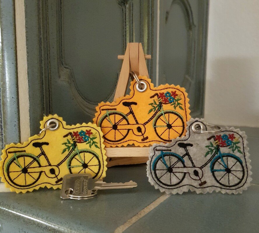 Stickdatei ITH Schlüsselanhänger mit Fahrrad.