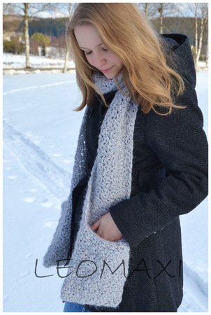 Ich liebe Taschenschals. So hast du nie mehr kalte Hände oder kannst auch mal was Kleines verstauen. Eine schöne Idee, mal etwas anderes und trotzdem so einfach gemacht. Hier habe ich ihn in einem zarten grauen Flauschgarn gefertigt. Es ist besonders leicht, was für dieses Modell sehr wichtig ist.