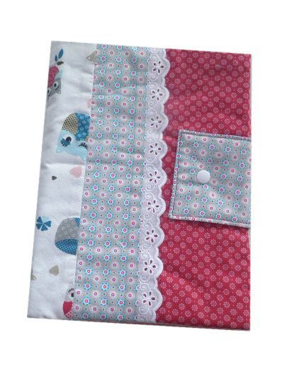 – You need: 3 fabric panels having 1 metre (1.09 yds.) width and 30 cm (11.8 inches) high/ 30 cm (11.8 inches) volume fleece / 1 metre (1.09 yds.) bias tape / Velcro fastener or press buttons for the flap / optionally some lace ribbon.