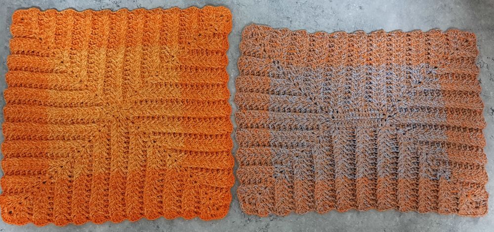 Das Muster ist auf der Rückseite anders, deshalb können auch beide Muster die Rückseite sein, je nachdem welches euch besser gefällt.