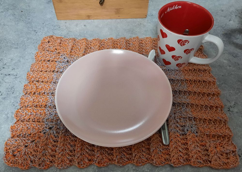 Die rechteckige Decke habe ich als Platzdeckchen gehäkelt und die quadratische als kleines Deckchen.