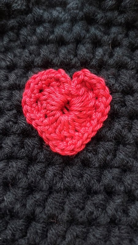 Sie enthält eine Textanleitung, eine Liste der verwendeten Maschen sowie eine Häkelschrift und Text für das Herzchen.