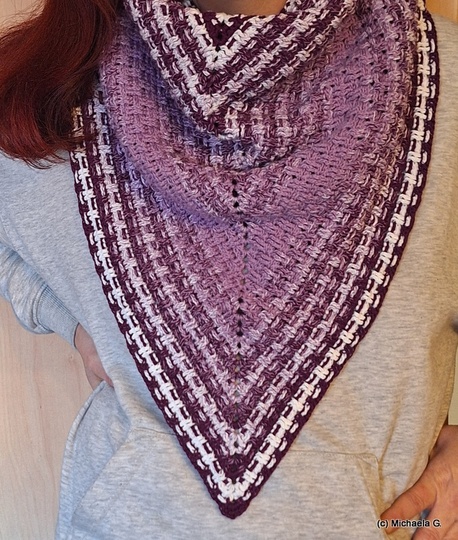 Als Bonus gibt es zusätzlich Häkelschriften für eine klassische und asymmetrische Variante. Hier gibt es keinen Text dazu.