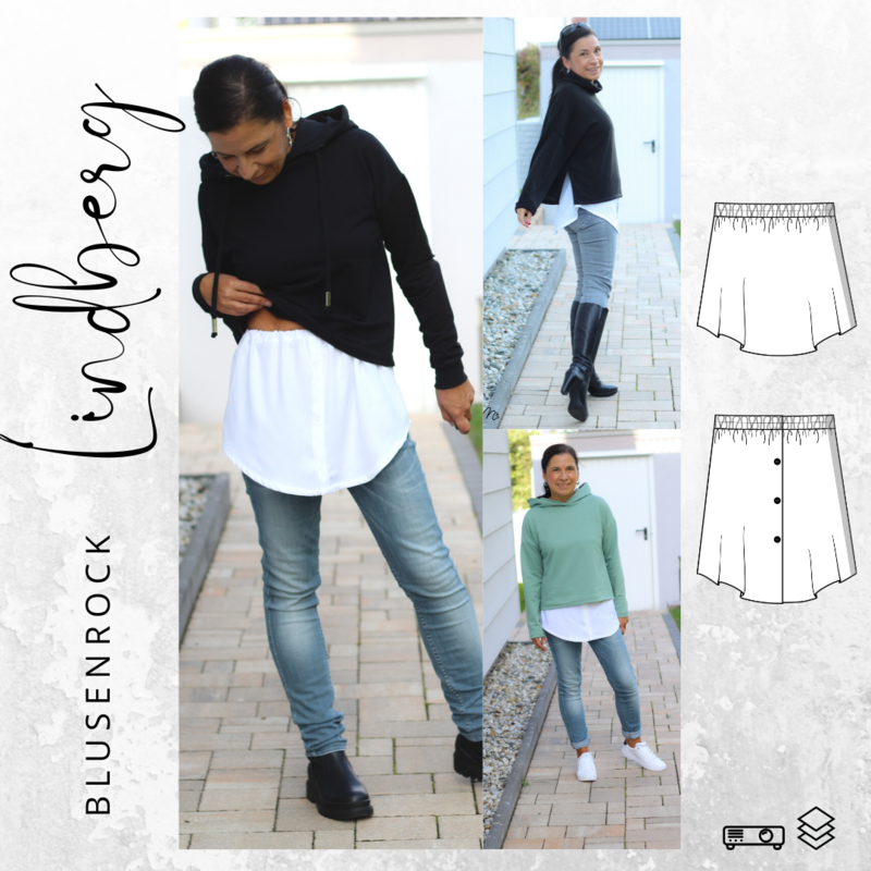 LINDBERG bekommst du in den Größen 34-54. Der Blusenrock ist perfekt um dein Outfit abzurunden. Du bekommst ihn in zwei Längen. Genäht wird er ganz klassisch wie eine Bluse. Falls du dich an Knöpfe nicht ran traust, sind auch ein paar Alternativmöglichkeiten in der Anleitung erklärt.