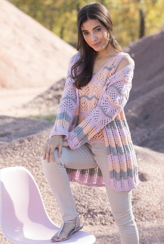 Die Anleitung für diesen Pulli ist in den Größen 34/36, 38/40 und 42/44 verfügbar.