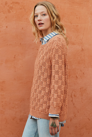 Die versetzten Flächen aus "patenten" Maschen und markanten Zöpfen lassen hier eine Karo-Optik entstehen, die sich allover in Szene setzt. Wir sagen es gleich: Dafür brauchst du etwas Strickerfahrung. Aber unsere genau ausgearbeitete Strickschrift erleichtert dir die Arbeit und du kannst mit einer Maschenprobe ein bisschen üben. Der klassisch anmutende Pulli besteht aus gerade geschnittenen Teilen, nur bei den Ärmeln kommt eine Kugelpassform ins Spiel, die für den perfekten Sitz im Schulterbereich sorgt. Aus hochwertigem Baumwoll-Kaschmirgarn ein "Für-Immer-Stück", das nicht nur für eine Saison deine Garderobe vervollständigt.