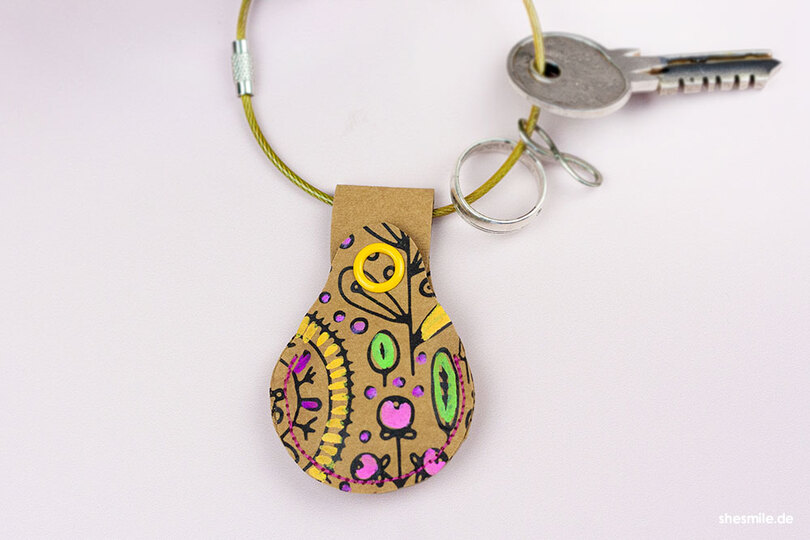 Der Anhänger kann auf ein vorhandenes Schlüsselband gefädelt oder an einem Schlüsselring befestigt werden.