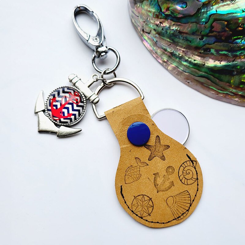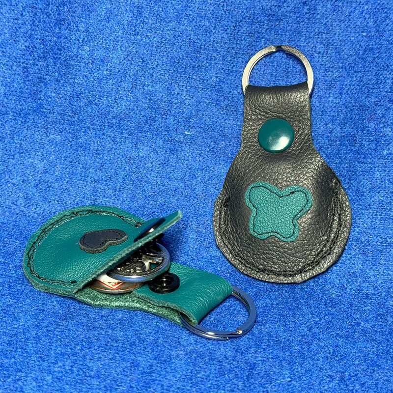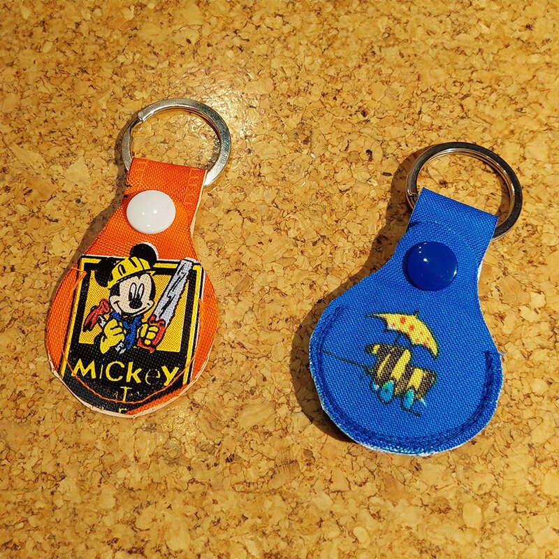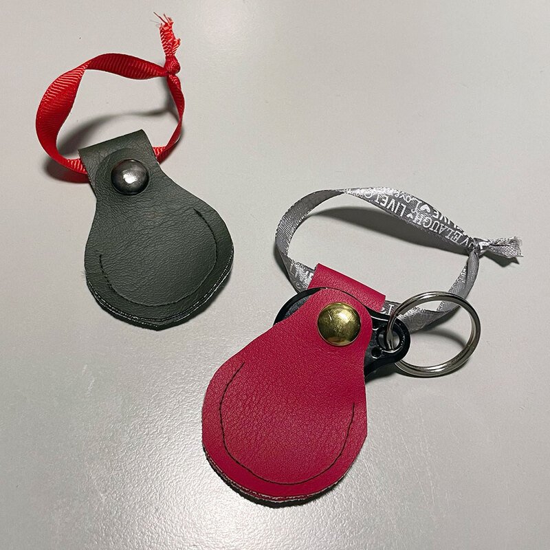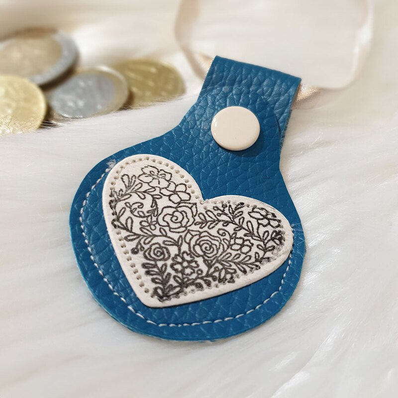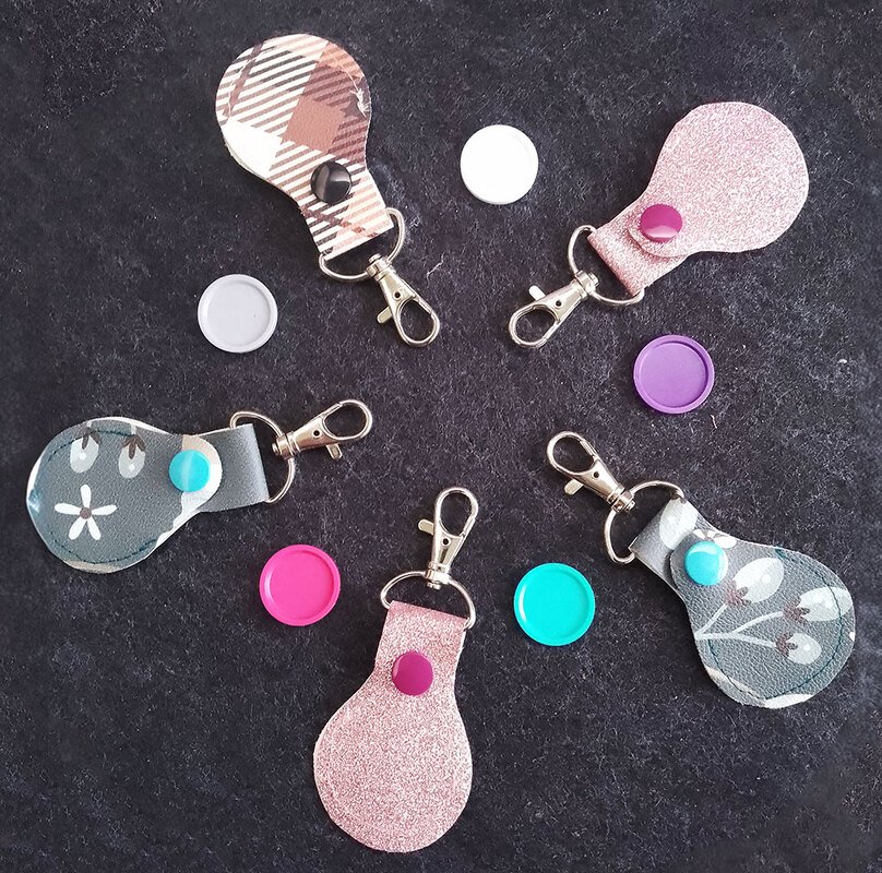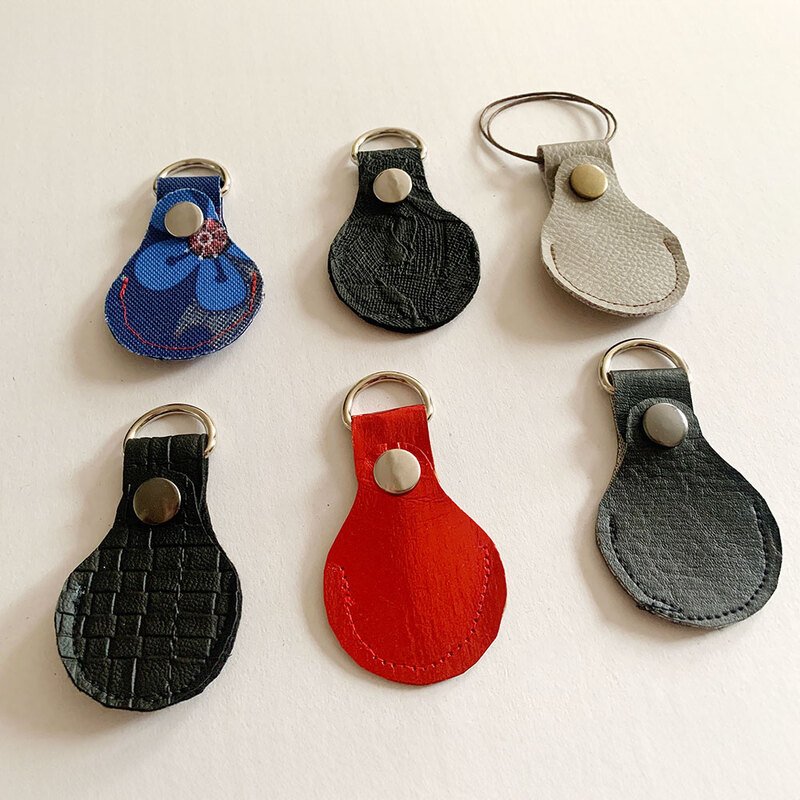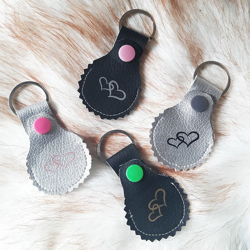 Nähanleitung und Schnittmuster gestaltet als PDF-E-Book für einen Taschen- und Schlüsselanhänger mit kleiner Tasche für AirTags, Einkaufswagenchips oder Kleingeld.