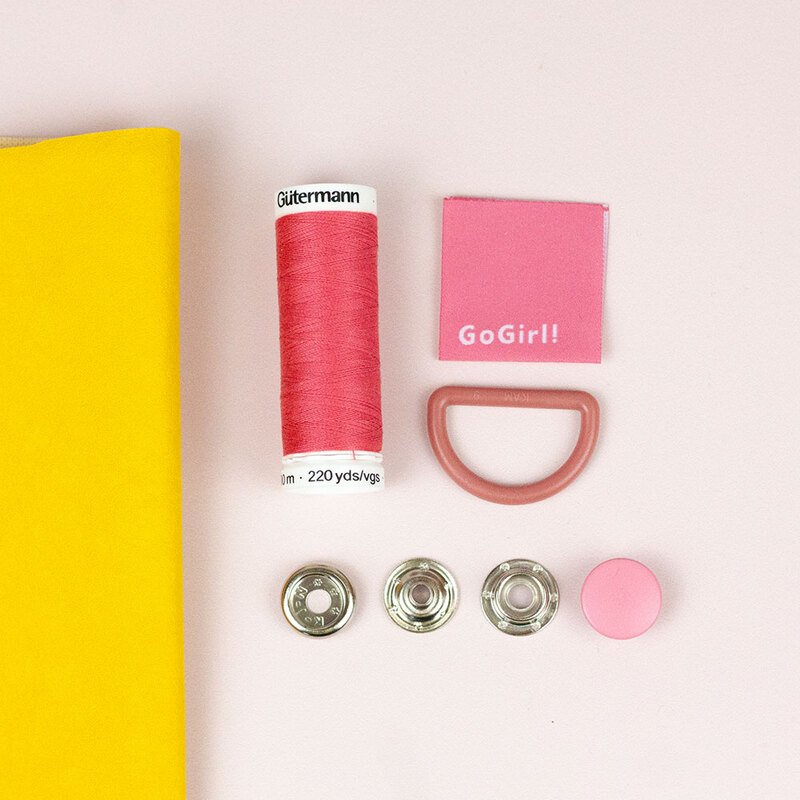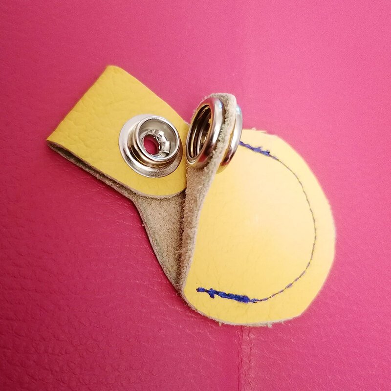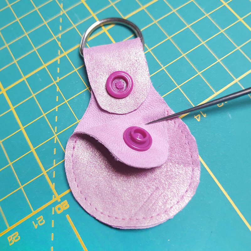 Festes Material, das nicht ausfranst (z.B. Leder, SnapPap, Kork oder Filz), Druckknopf passend zur Materialstärke, Nähgarn in passender Farbe.