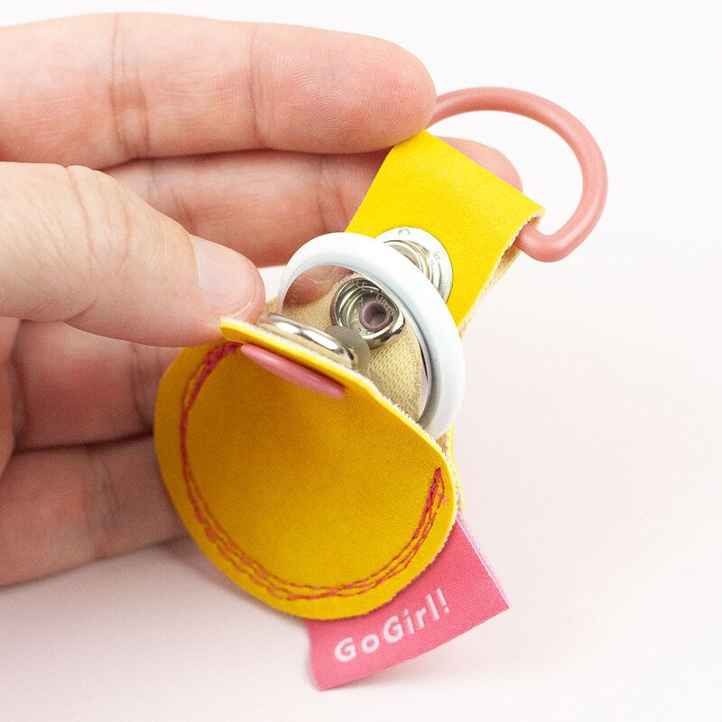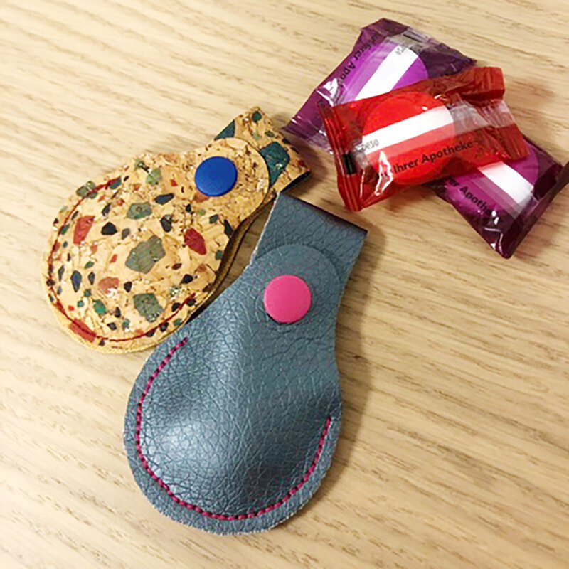 Der Inhalt ist immer griffbereit und wird mit einem Druckknopf verschlossen.