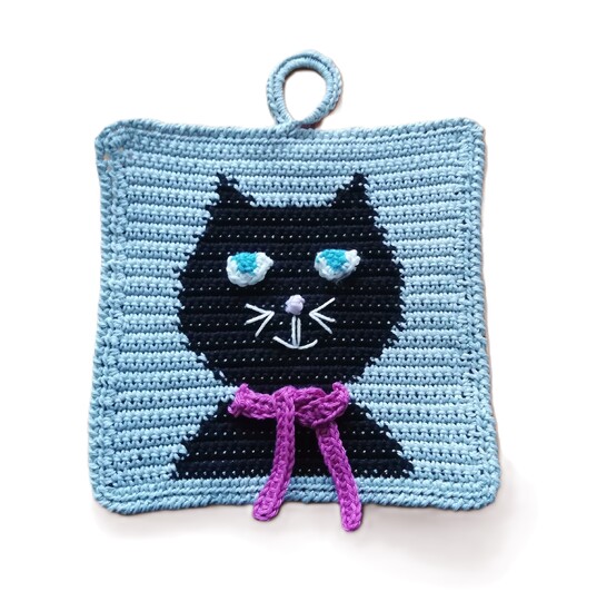 Die Topflappen sind nicht nur für Liebhaber der Samtpfoten ein schönes Geschenk. Eine Katze trägt einen Schal Dekoration. Aber wie ihr auf dem Produktbild seht, macht der Topflappen auch ohne zusätzliche Dekoration etwas daher. Zusätzliche Farbakzente könnt ihr auch setzen, indem ihr z.B. die Umrandung in einer Kontrastfarbe häkelt. Eurer Phantasie sind da keine Grenzen gesetzt.