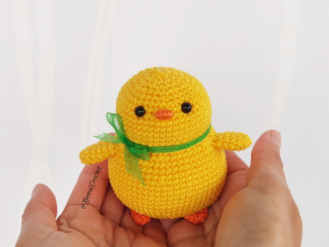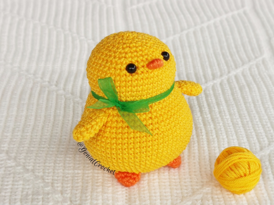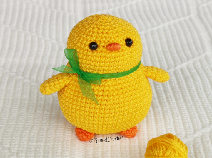 Dieses Muster ist für diejenigen gedacht, die bereits häkeln können (Grundkenntnisse: Magischer Ring (Amigurumi Zauberring), feste Masche, Kettmasche, Zunahme, Abnahme, in Spiralrunden häkeln). Dieses Küken wird ohne Zusammennähen der Teile gehäkelt.