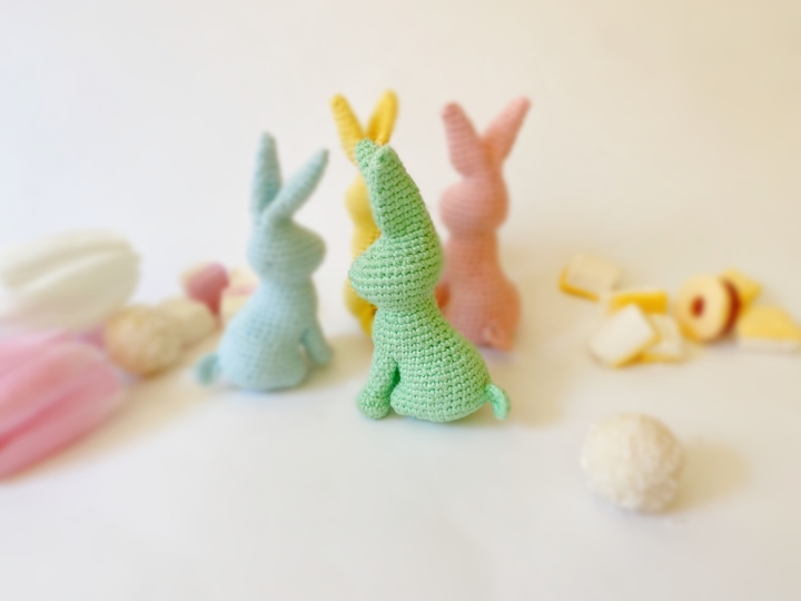 Kleine süße Hasen in Pastellfarben, als Osterdekoration.