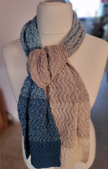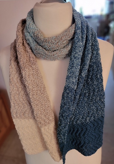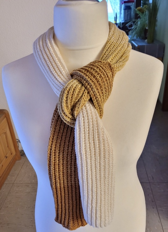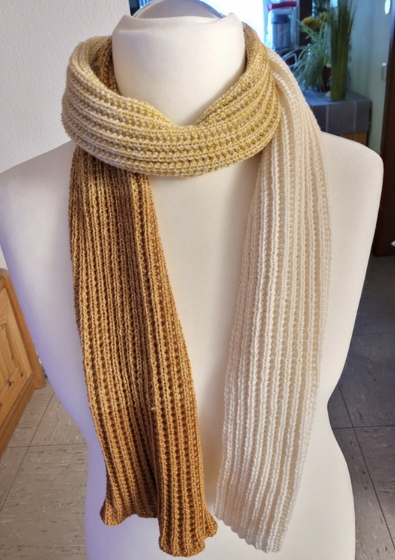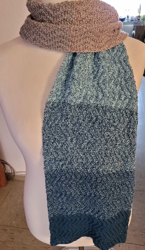 Und die Breite des Schals kann ganz einfach beliebig verändert werden. Entweder man lässt 4 M weg oder nimmt 4 M dazu. Einfach in 4er-Schritten vorgehen, dann passt das Muster immer.