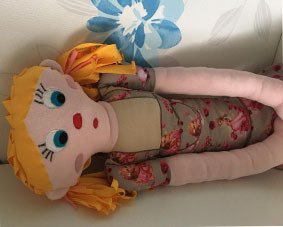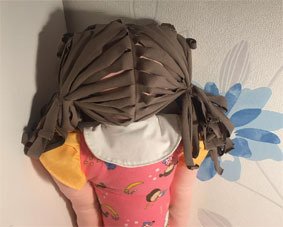 Mitte zusammengenäht. Außerdem gibt es drei verschiedene Gesichter und Frisuren zwischen denen sie auswählen können.