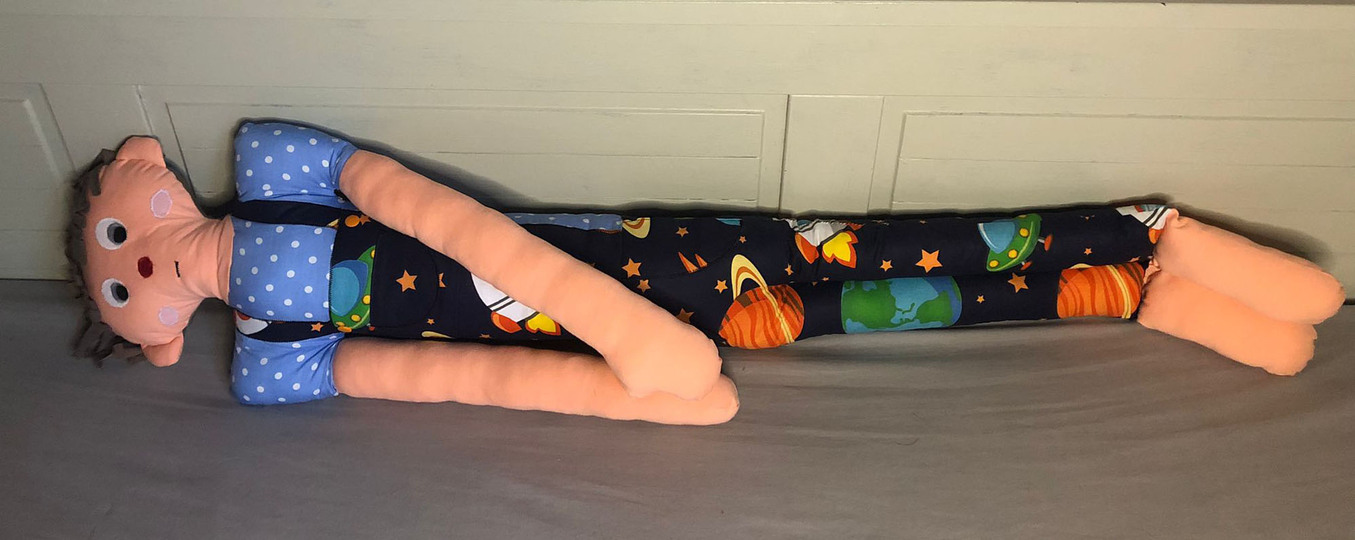 Welches Kind hat nicht gerne etwas zum Kuscheln in seinem Bett. Die Bettschlangen sind hierfür optimal. Sie stützen das Kind im Rücken oder Bauchbereich und laden zum Kuscheln und spielen ein. Die Bettschlangen Boy gibt es in drei verschiedenen Ausführungen. Bei der Version 1 sind die Arme und Beine beweglich. Bei der Version 2