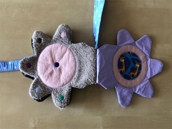 Unterwegs sind die kleinen schnell gelangweilt. Hierfür ist das Fühlbuch bestens geeignet. Man kann es an den Kinderwagen befestigen, damit es nicht verloren geht. Das Fühlbuch dient zur Beschäftigung des Kindes. Und außerdem lernt das Kind hier verschiedene Materialien kennen und schult somit seinen Tastsinn. Das Fühlbuch gibt