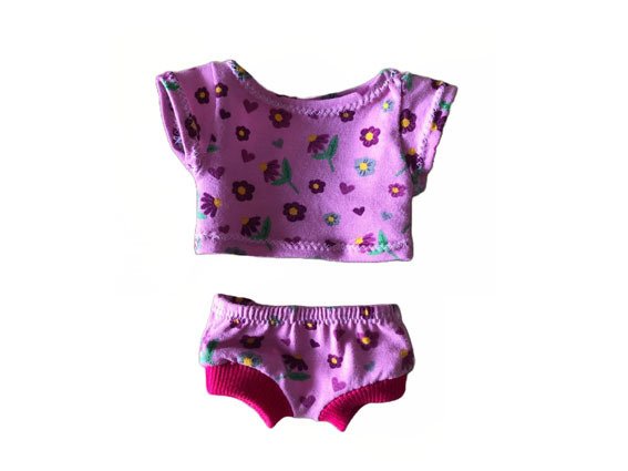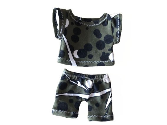 Der Teddy kann aus verschiedenen Stoffen genäht werden, wie Nicki, Fleece, Frottee, Kuschelstoffe oder Minkeyfleece. Die Stoffe sollten leicht elastisch sein, da es sonst beim zusammennähen sehr schwierig wird, da die Öffnungen sehr klein sind. T-Shirt, Slip und Boxershort werden aus Jersey genäht. Der Latzrock, die Latzhose,