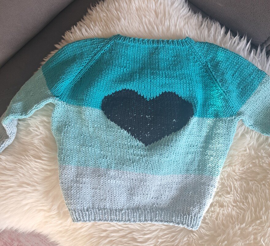 (Wenn der Pullover länger gewünscht ist, einfach vor dem Rippenmuster weiter stricken bis gewünschte länge erreicht ist.)