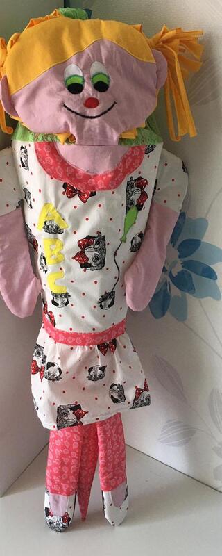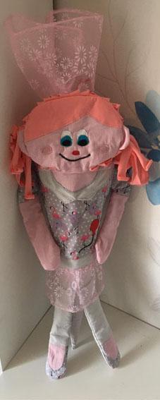 Genäht wird die Schultüte aus Baumwollstoffen, die Haare sind aus Jersey, damit sind die Haare angenehm weich und die einzelnen Strähnen locken sich ein wenig. Für den oberen Bereich der zum zumachen der Schultüte dient, kannst du verschiedene Materialien benutzen. Organzier Stoff, Tüll, Spitzenstoffe oder auch Fliegengitter. Außerdem werden noch Bügelvlies, Volumenvlies, Kam Snaps und Kordel benötigt. Um dem ganzen Halt zu verleihen, wird in die fertige Hülle ein Schultüten-Rohling gesteckt. Hierfür benötigst du für die große Schulttüte einen Rohling von 68cm länge und für die kleine Schultüte einen Rohling von 42cm länge.