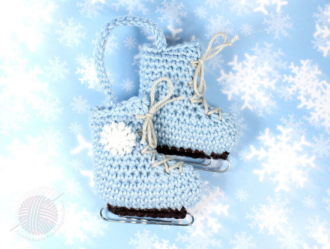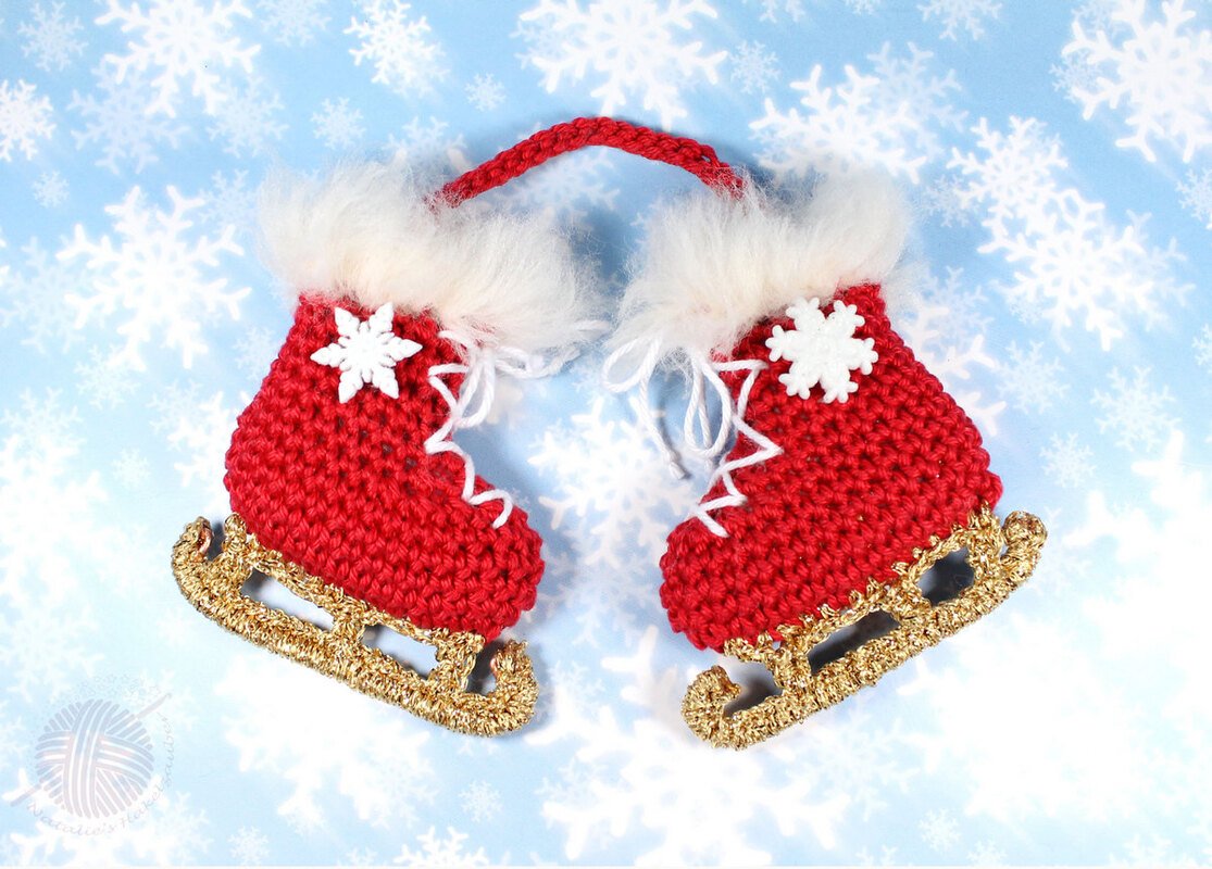 Die umfangreiche, reichlich bebilderte PDF-Häkelanleitung zum Häkeln von Schlüsselanhänger (Tannenbaumschmuck) "Schlittschuhe & Inliner" zum Dekorieren des Tannenbaums oder als Mitbringsel für die Freunde. Die Schuhe kann man auch als Schlüsselanhänger benutzen. Es werden drei Varianten beschrieben: Schlittschuhe mit zwei Varianten von Kufen (mit Büroklammern oder aus dem Draht) und Inliner mit Rädern.