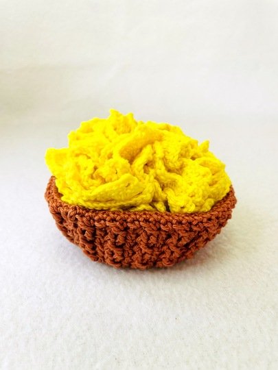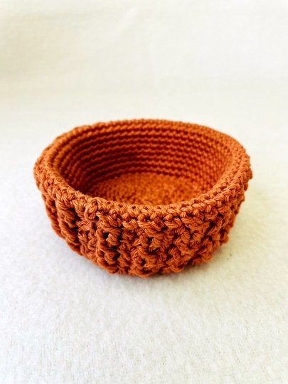 Die Größe variiert je nach Garn und Nadelstärke. Mit der von mir verwendeten Wolle und Nadelstärke wird die Blume ca. 15 cm und das Körbchen ca 10 cm im Durchmesser.