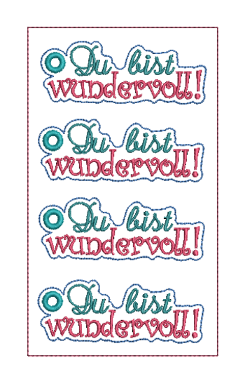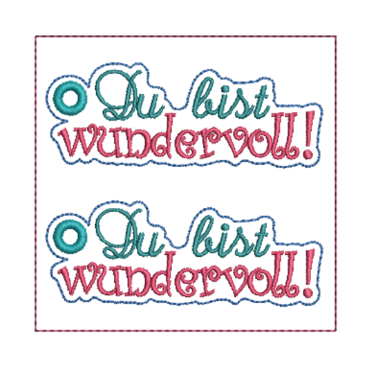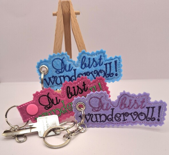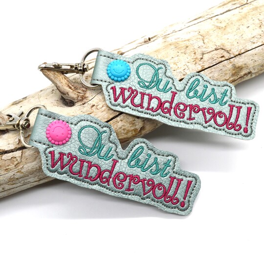 Stickdatei für einen Taschenbaumler mit dem Schriftzug "Du bist wundervoll!"
