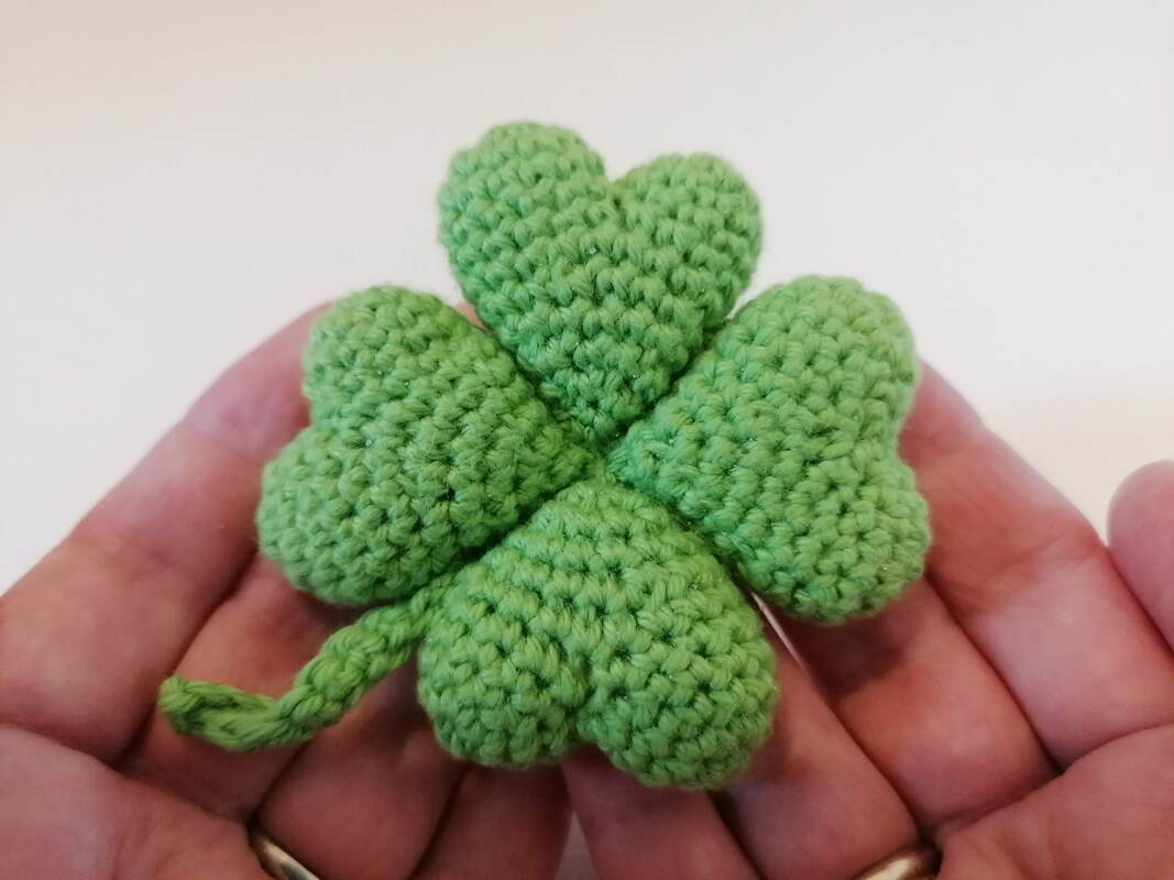Diese Anleitung vermittelt nicht die Grundlagen des Häkelns. Sie besteht ausschließlich aus schriftlichen Anweisungen und Schritt-für-Schritt-Fotos, die erklären, wie man ein Amigurumi-Kleeblatt häkelt.