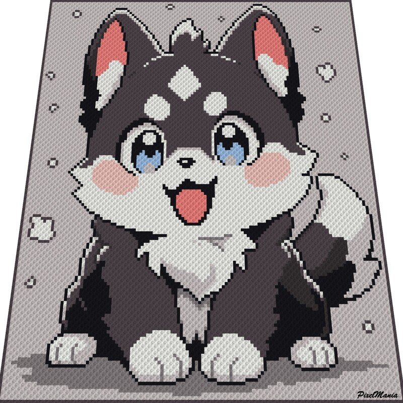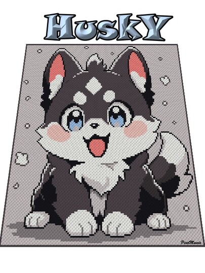 Husky ist ein digitales Diagramm, das für verschiedene Häkeltechniken verwendet werden kann, hier speziell für Ecke zu Ecke = C2C oder Mini C2C.