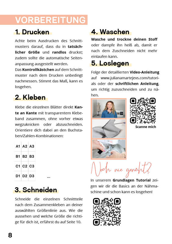 Die Video-Anleitung zum Schnittmuster findest du auf julianamartejevs. com unter Nähanleitungen. Falls du noch nie genäht hast, schau dir als erstes unser Nähmaschinen-Grundlagen Video-Tutorial an. Dort lernst du die Bestandteile einer Nähmaschine kennen und lernst deine erste Naht zu fertigen.